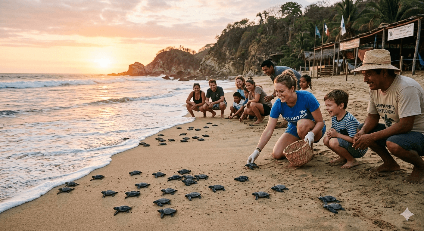 Reintegración al Océano: Vive el momento más emotivo de la experiencia: la liberación y acompañamiento de las crías hacia su primer encuentro con las olas. Un compromiso directo con la regeneración de la especie.